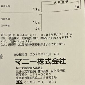 ■ 今回の配当金(銘柄:マニー)